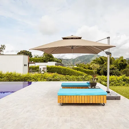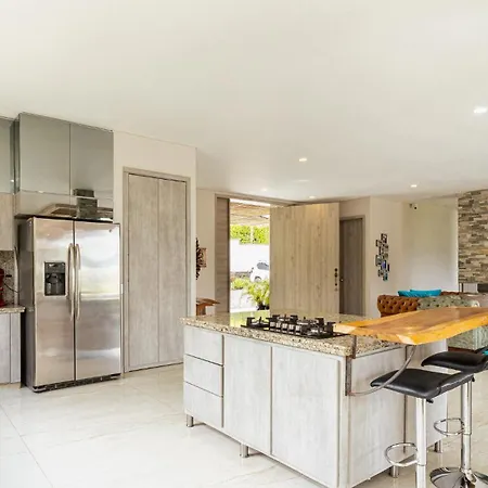シウダデラ・コンファミリアル公園まで運転して10分の所にあるHermosa Casa Campestre A 9 Minutos De La Ciudadは庭園の景色があります. バルコニ-,ワ-クデスク とコ-ヒ-/紅茶メ-カ-は,ヴィラにあります.